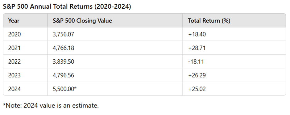 The technology sector remains the backbone of the U.S. economy, with leading companies in their respective areas performing very well (Morningstar). Giants like Apple, Alphabet, and Microsoft announced record earnings driven by innovation and operational efficiency in 2024. Prior to that the S&P 500 ended 2023 with a 24% increase and has moved modestly higher at the start of 2024 (Yahoo Finance | S&P 500). NVIDIA, the leader in AI and GPU technologies, announced an unprecedented $50 billion stock buyback program, showing its confidence in long-term growth (Yahoo Finance | NVIDIA $50 Billion Stock Buyback).